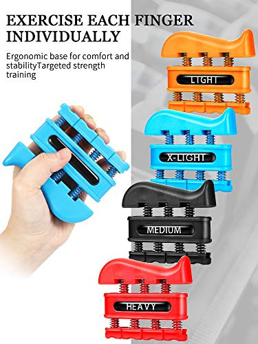 Az ujj erősítő szett különböző erősségi szinteket kínál, az X-Light-tól egészen a heavy-ig, így mindenki megtalálhatja a számára megfelelő nehézségi fokozatot. Az 1.2 kg-tól 5 kg-ig terjedő ellenállás lehetővé teszi, hogy fokozatosan növeld az ujjaid erejét, ami különösen hasznos lehet, ha gitározol, zongorázol vagy éppen sziklamászásra készülsz. Az egyes ujjak külön edzése segít abban, hogy kiegyensúlyozottabbá válj, és elkerüld a sérüléseket.