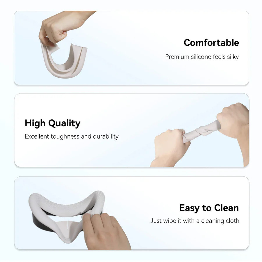 Az AMVR szilikon arcvédő kiváló minőségű, mosható szilikonból készült, ami rendkívül könnyen tisztítható és gyorsan szárad. Csak töröld le egy nedves kendővel, és máris készen áll arra, hogy megoszd a headsetet a családoddal vagy barátaiddal. Így nem kell aggódnod a higiéniáért, és mindenki élvezheti a közös VR kalandokat.