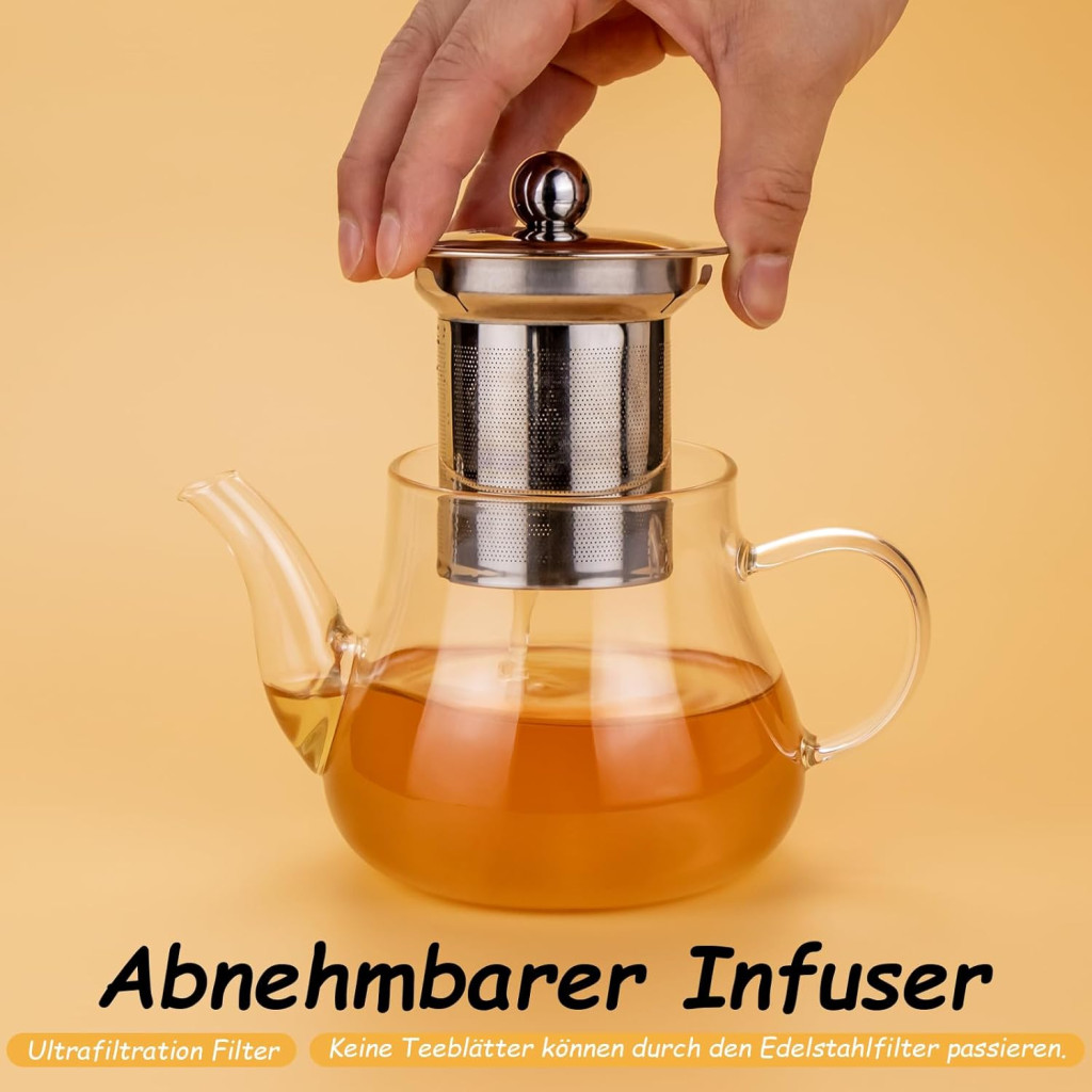 A Honneeo teáskanna modern és elegáns megjelenésével bármelyik konyhában jól mutat. Az üvegtest átlátszó, így mindig láthatod, mennyi tea van még benne, és a rozsdamentes acél szűrő biztosítja, hogy a tealevelek ne kerüljenek a csészédbe. A V-alakú kiöntőcsőr pedig garantálja, hogy a tea öntése mindig sima és cseppmentes legyen.