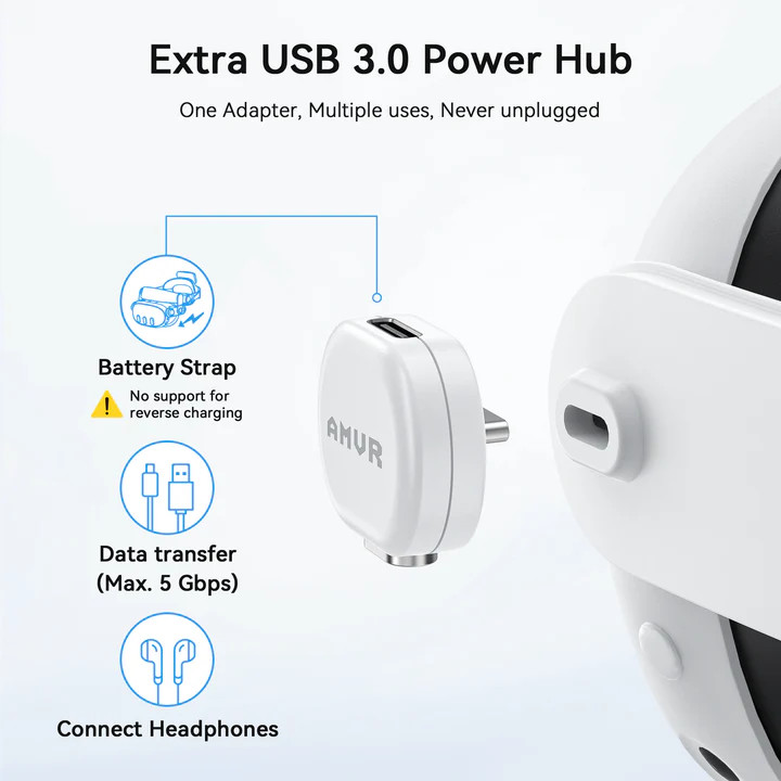 Az AMVR CD2 töltőállomás nemcsak a Quest 3/3S headsetekkel kompatibilis, hanem a különböző pántokkal és arcfelületekkel is. Legyen szó halo pántról, elite pántról vagy az eredeti pántról, ez a töltőállomás mindegyikkel remekül működik. Így nem kell aggódnod, hogy a kiegészítőid nem fognak illeszkedni, hiszen ez a töltőállomás mindenre fel van készülve.