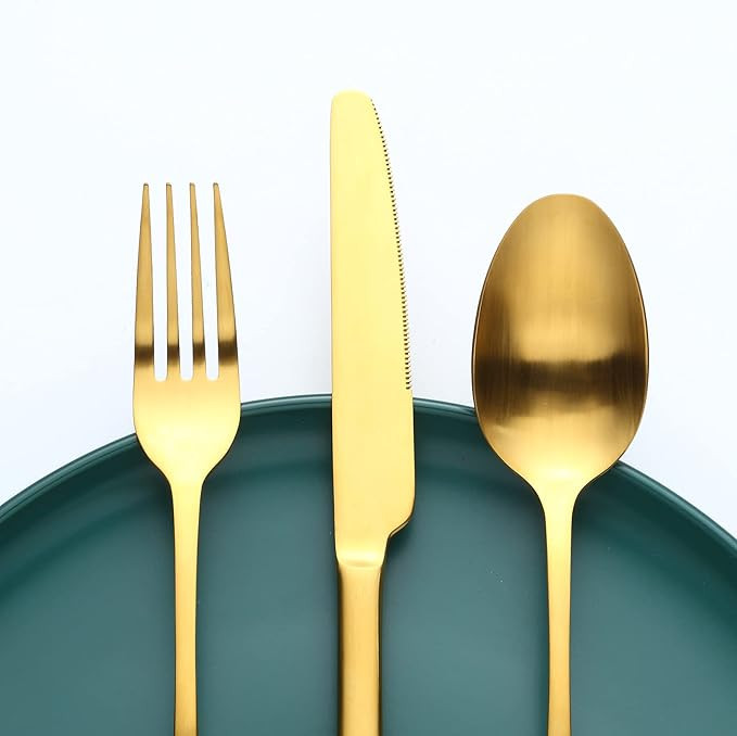 A Bestdin evőeszközkészlet minden darabja úgy lett megtervezve, hogy a lehető legnagyobb eleganciát sugározza. A matt arany szín nemcsak modern, de időtálló is, így bármilyen stílusú terítékhez illik. A tükörfényes felület pedig egy kis extra csillogást ad, ami különösen jól mutat gyertyafényes vacsorákon vagy ünnepi alkalmakon. Ezzel a készlettel minden étkezés különleges élménnyé válik.