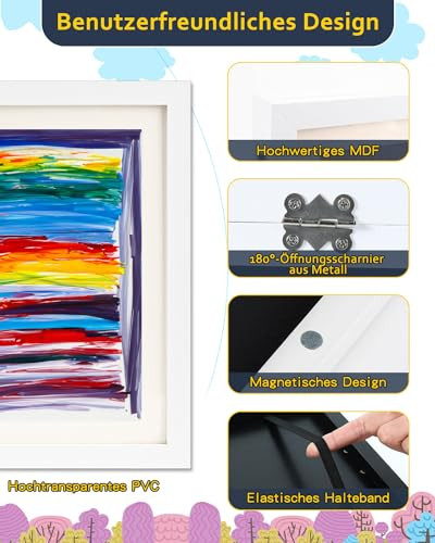 A Ciscle A4 gyerekrajz képkeret strapabíró anyagokból készült, így hosszú távon is megőrzi szépségét. A keret biztonságos, lekerekített sarkai megóvják a gyerekeket a sérülésektől, így nyugodtan hagyhatod, hogy ők maguk is kezeljék. A tartós kialakításnak köszönhetően a keret ellenáll a mindennapi használatnak, így sokáig élvezhetitek a gyerekek alkotásait a falon.