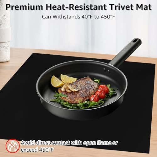 Más fa vagy gumi alátétekkel ellentétben, amelyek könnyen megéghetnek, a DAJAVE védőalátét akár 446℉ (230℃) hőmérsékletet is kibír. Ez azt jelenti, hogy nyugodtan használhatod a forró edények alatt, és nem kell aggódnod a hő okozta károk miatt. Ráadásul, ha kisgyerekek vagy háziállatok vannak a háztartásodban, az alátét megvédi őket a forró főzőlap közvetlen érintésétől.