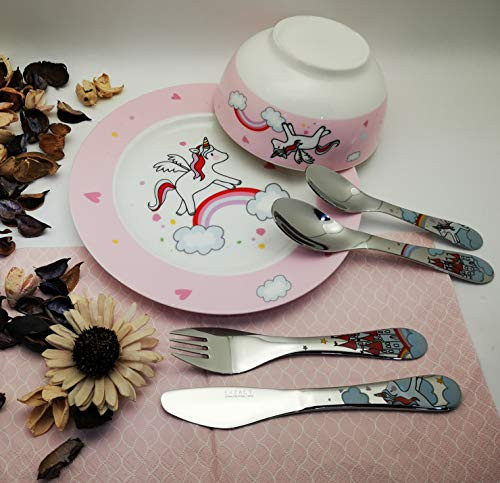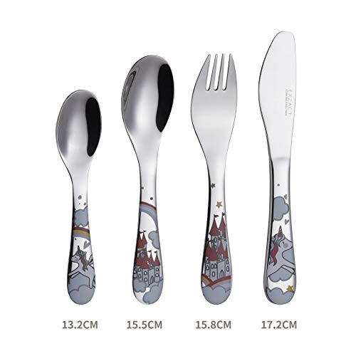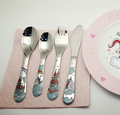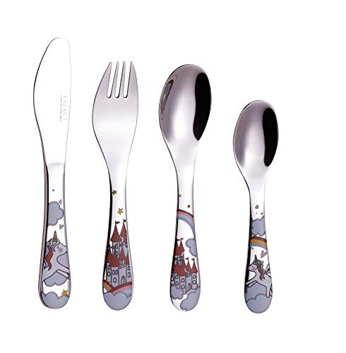 Az Exzact gyermek evőeszköz szettje egyedi unikornis mintával készült, ami azonnal magára vonja a figyelmet. A színes és vidám dizájn nemcsak a gyerekek, de a szülők tetszését is elnyeri. Az evőeszközök fogantyúi kényelmesen illeszkednek a kis kezekbe, így a gyerekek könnyedén használhatják őket. A szett tartalmaz egy kést, egy villát, egy kanalat és egy teáskanalat, mindegyikük unikornis motívummal díszítve.