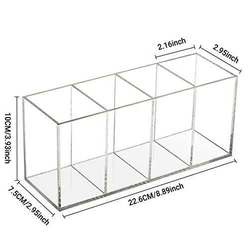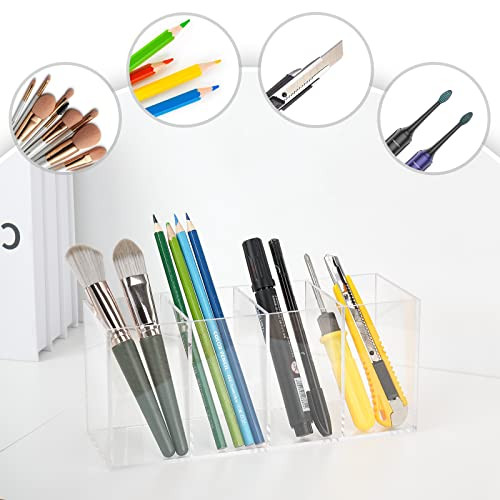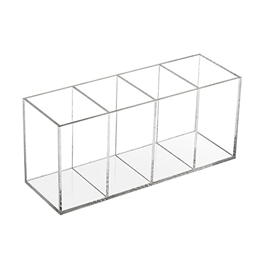 Az FFowcye akril tolltartó nemcsak tollak és ceruzák tárolására alkalmas, hanem sminkecsetek, ollók, vonalzók és egyéb irodai vagy szépségápolási eszközök rendszerezésére is. A négy különálló rekesz lehetővé teszi, hogy különböző kategóriák szerint rendezd el a dolgaidat, így mindig tudni fogod, hol találod meg, amit keresel. Ráadásul az átlátszó anyag miatt azonnal látod, mi van benne, így időt spórolhatsz a keresgéléssel.