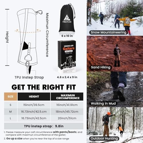 A HIKENTURE Gamaschen kialakítása lehetővé teszi, hogy könnyedén fel- és levehesd őket, még akkor is, ha már rajtad van a túrabakancs. Az állítható pántok és a praktikus cipzárak segítenek abban, hogy a gamaschenek tökéletesen illeszkedjenek a lábadra, és ne mozduljanak el a helyükről. Így nem kell időt vesztegetned a túra elején vagy végén a bonyolult öltözködéssel.