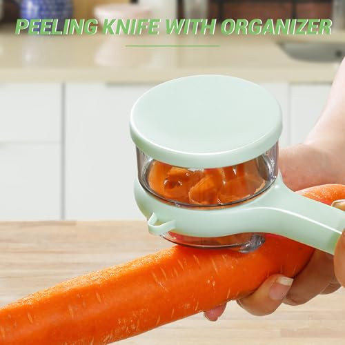 Ha szereted a konyhai eszközöket, amik nemcsak praktikusak, de még jól is néznek ki, akkor a Multifunkciós hámozókés tárolódobozzal neked való! Ez a kis eszköz nemcsak megkönnyíti a gyümölcsök és zöldségek hámozását, de a konyhád dísze is lehet. A zöld hámozócsésze segítségével biztonságosabban és tisztábban hámozhatsz, miközben a felesleges héjak a gyűjtődobozba kerülnek. Nincs többé rendetlenség, csak tiszta és gyors munka!