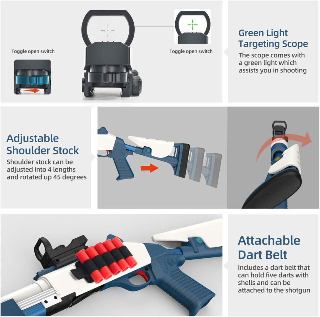 A beépített távcsővel a célzás gyerekjáték! Akár a kertben, akár a szobában játszol, a távcső segít, hogy mindig pontosan eltaláld a célpontot. A távcső könnyen állítható, így bármilyen távolságból tökéletesen láthatod a célpontot. Ez a funkció különösen hasznos, ha versenyezni szeretnél a barátaiddal, hiszen így mindig te lehetsz a legjobb lövész!