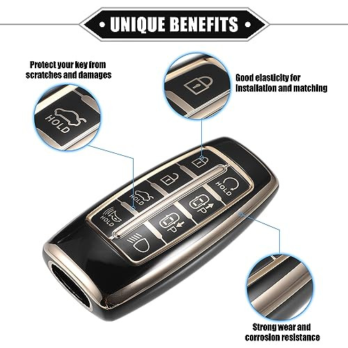 Az ABSOPRO autókulcs medál Hyundai 8 gombos TPU fekete egy igazán menő kiegészítő, amit minden Hyundai tulajdonosnak érdemes beszereznie. Ez a kulcsmedál nemcsak megvédi a kulcsodat a karcolásoktól és sérülésektől, hanem stílusos megjelenést is kölcsönöz neki. Ha unod már a megszokott, unalmas kulcsokat, akkor ez a termék neked való!