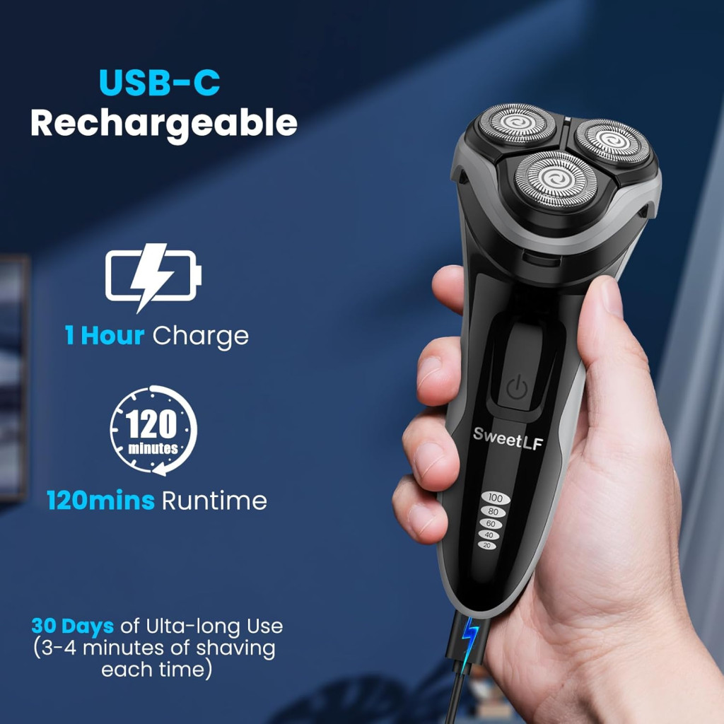 A SweetLF elektromos borotva egyik legnagyobb előnye, hogy mindössze 1 óra alatt teljesen feltölthető, és akár 120 percig is használhatod egyetlen töltéssel. Ez azt jelenti, hogy akár hetekig is elfelejtheted a töltőt, és mindig készen állhatsz a borotválkozásra. A gyors töltési idő és a hosszú üzemidő kombinációja ideális választássá teszi a rohanó hétköznapokra.