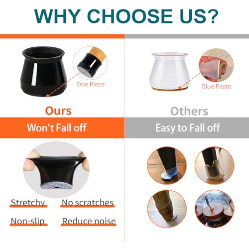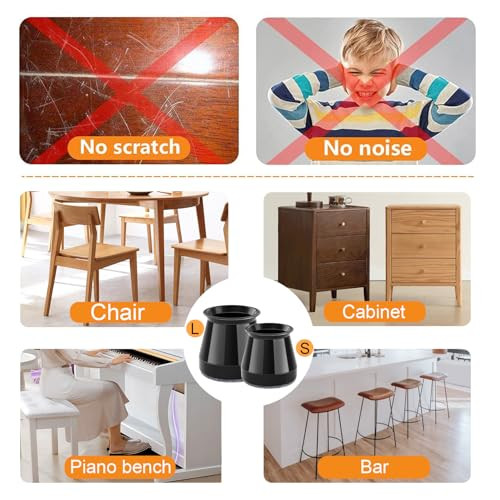 A Védőkupakok szék lábakhoz filccel rendkívül egyszerűen felhelyezhetők. Csak húzd rá a szék lábára, és már kész is! Nincs szükség semmilyen szerszámra vagy ragasztóra, így pillanatok alatt megvédheted a padlót. A gumis anyag biztosítja, hogy a kupakok szorosan illeszkedjenek, és ne csússzanak le használat közben.