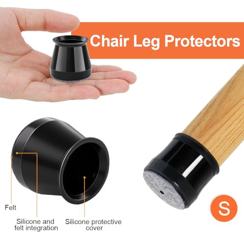 A Védőkupakok szék lábakhoz filccel rendkívül egyszerűen felhelyezhetők. Csak húzd rá a szék lábára, és már kész is! Nincs szükség semmilyen szerszámra vagy ragasztóra, így pillanatok alatt megvédheted a padlót. A gumis anyag biztosítja, hogy a kupakok szorosan illeszkedjenek, és ne csússzanak le használat közben.
